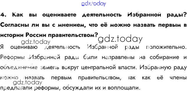 На страницах сайта gdz.today вы найдете учебный и вспомогательный материал, направленный на улучшения знаний школьной программы. ГДЗ - онлайн мир знаний Вопросы и задания §6 4 Учебнику по Истории России для 7 класса Арсентьев, Данилов Просвещение 2016