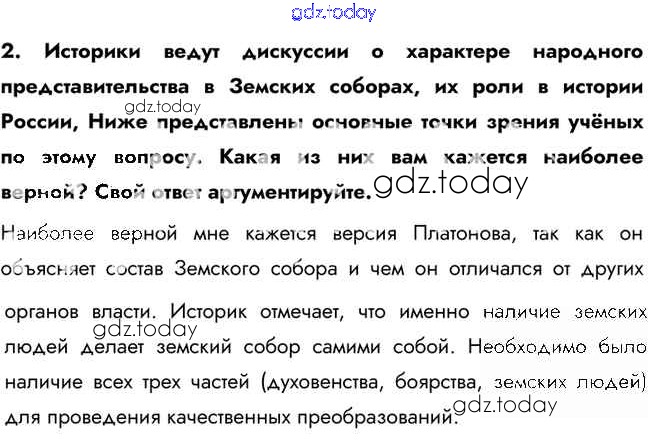 На страницах сайта gdz.today вы найдете учебный и вспомогательный материал, направленный на улучшения знаний школьной программы. ГДЗ - онлайн мир знаний Думаем, сравниваем, размышляем §6 2 Учебнику по Истории России для 7 класса Арсентьев, Данилов Просвещение 2016