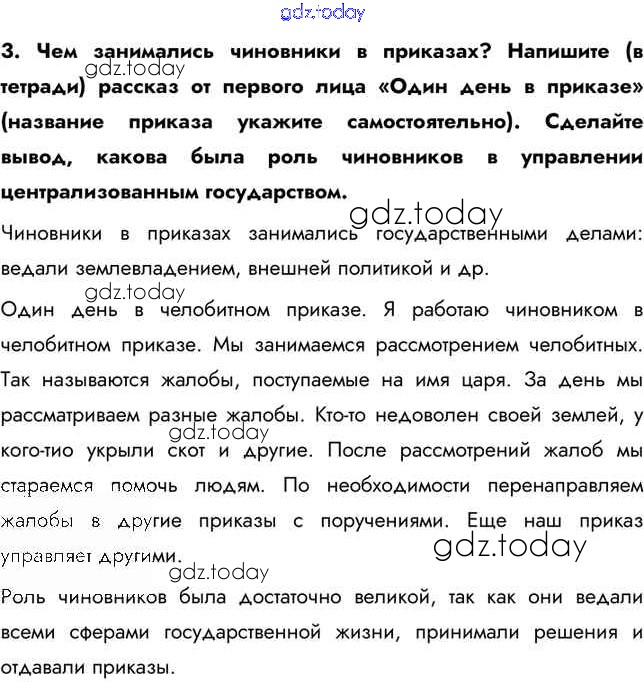 На страницах сайта gdz.today вы найдете учебный и вспомогательный материал, направленный на улучшения знаний школьной программы. ГДЗ - онлайн мир знаний Думаем, сравниваем, размышляем §6 3 Учебнику по Истории России для 7 класса Арсентьев, Данилов Просвещение 2016