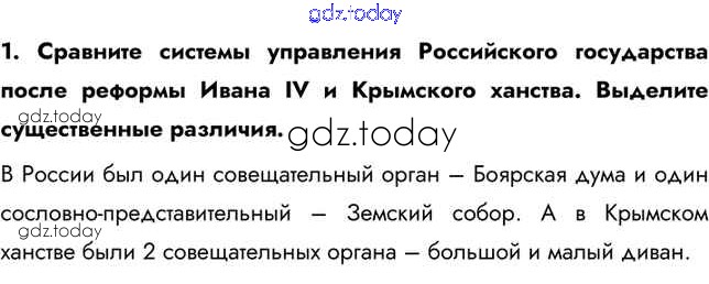 На страницах сайта gdz.today вы найдете учебный и вспомогательный материал, направленный на улучшения знаний школьной программы. ГДЗ - онлайн мир знаний Думаем, сравниваем, размышляем Государства Поволжья, Северного Причерноморья, Сибири в середине XVI в. 1 Учебнику по Истории России для 7 класса Арсентьев, Данилов Просвещение 2016