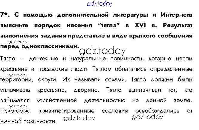 На страницах сайта gdz.today вы найдете учебный и вспомогательный материал, направленный на улучшения знаний школьной программы. ГДЗ - онлайн мир знаний Вопросы и задания §9 7 Учебнику по Истории России для 7 класса Арсентьев, Данилов Просвещение 2016