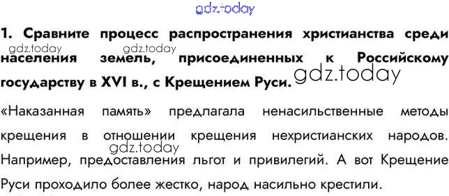 На страницах сайта gdz.today вы найдете учебный и вспомогательный материал, направленный на улучшения знаний школьной программы. ГДЗ - онлайн мир знаний Думаем, сравниваем, размышляем Народы России во второй половине XVI в. 1 Учебнику по Истории России для 7 класса Арсентьев, Данилов Просвещение 2016