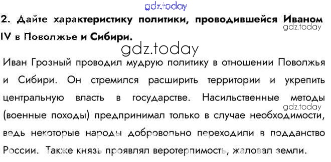 На страницах сайта gdz.today вы найдете учебный и вспомогательный материал, направленный на улучшения знаний школьной программы. ГДЗ - онлайн мир знаний Думаем, сравниваем, размышляем Народы России во второй половине XVI в. 2 Учебнику по Истории России для 7 класса Арсентьев, Данилов Просвещение 2016