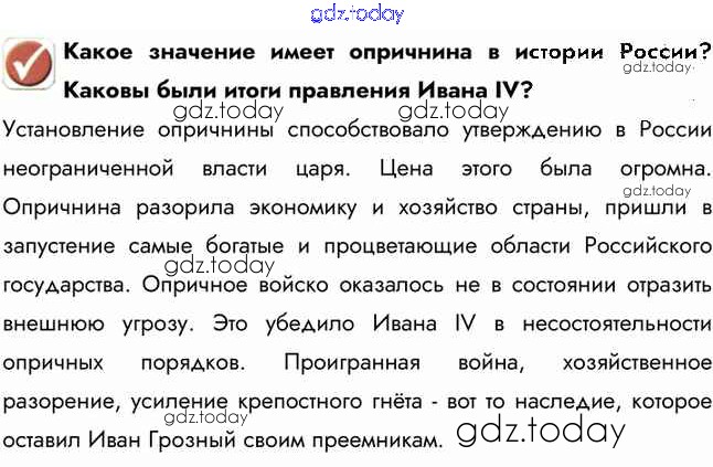 На страницах сайта gdz.today вы найдете учебный и вспомогательный материал, направленный на улучшения знаний школьной программы. ГДЗ - онлайн мир знаний Вопрос в начале параграфа §10 1 Учебнику по Истории России для 7 класса Арсентьев, Данилов Просвещение 2016