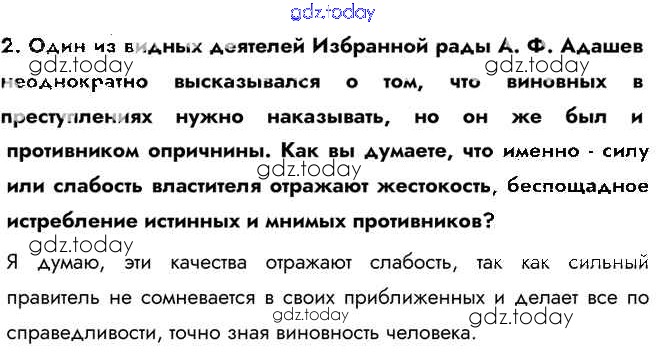 На страницах сайта gdz.today вы найдете учебный и вспомогательный материал, направленный на улучшения знаний школьной программы. ГДЗ - онлайн мир знаний Думаем, сравниваем, размышляем §10 2 Учебнику по Истории России для 7 класса Арсентьев, Данилов Просвещение 2016