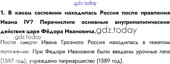 На страницах сайта gdz.today вы найдете учебный и вспомогательный материал, направленный на улучшения знаний школьной программы. ГДЗ - онлайн мир знаний Вопросы и задания §11 1 Учебнику по Истории России для 7 класса Арсентьев, Данилов Просвещение 2016