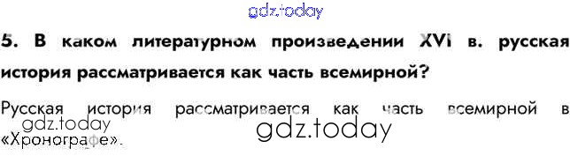 На страницах сайта gdz.today вы найдете учебный и вспомогательный материал, направленный на улучшения знаний школьной программы. ГДЗ - онлайн мир знаний Думаем, сравниваем, размышляем Культура и повседневная жизнь народов России в XVI в. 5 Учебнику по Истории России для 7 класса Арсентьев, Данилов Просвещение 2016