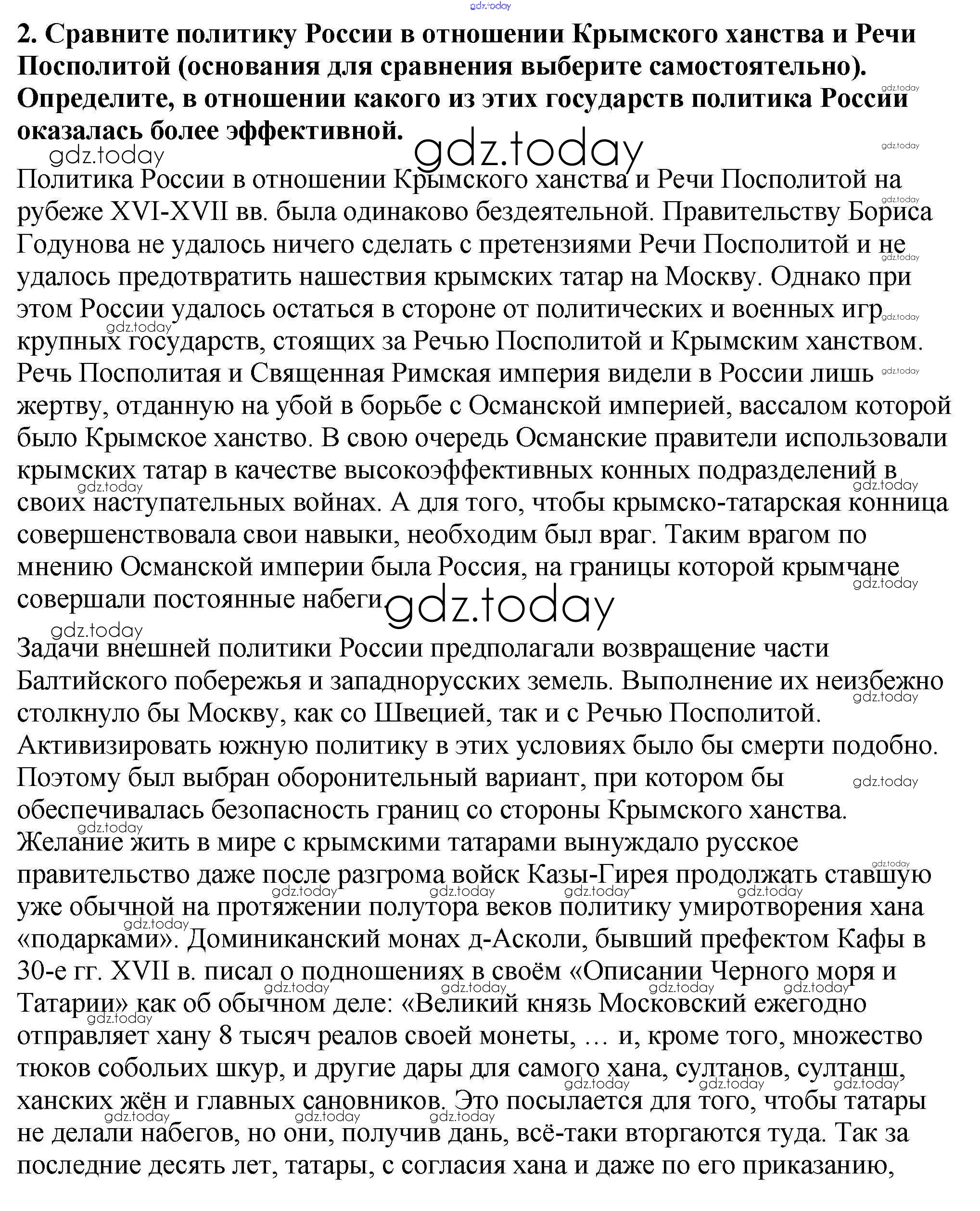 На страницах сайта gdz.today вы найдете учебный и вспомогательный материал, направленный на улучшения знаний школьной программы. ГДЗ - онлайн мир знаний Думаем, сравниваем, размышляем §13 2 Учебнику по Истории России для 7 класса Арсентьев, Данилов Просвещение 2016