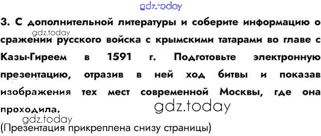На страницах сайта gdz.today вы найдете учебный и вспомогательный материал, направленный на улучшения знаний школьной программы. ГДЗ - онлайн мир знаний Думаем, сравниваем, размышляем §13 3 Учебнику по Истории России для 7 класса Арсентьев, Данилов Просвещение 2016