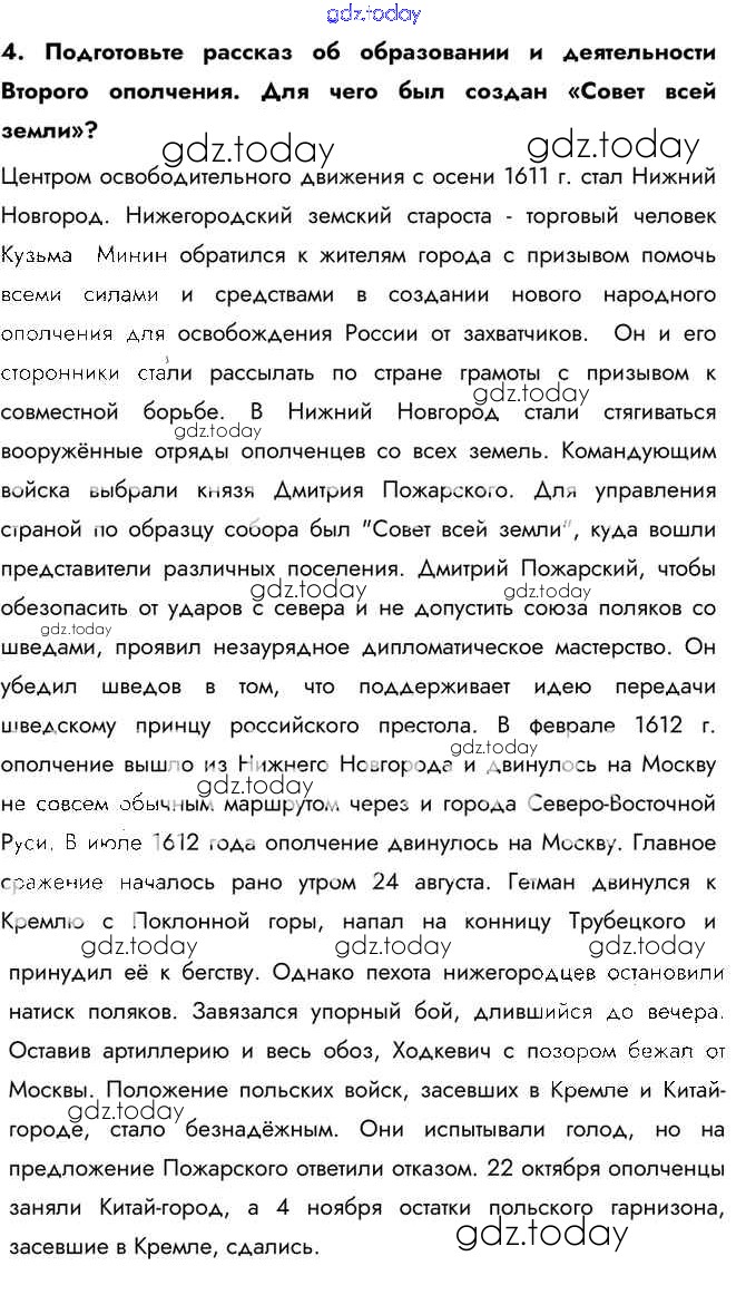 На страницах сайта gdz.today вы найдете учебный и вспомогательный материал, направленный на улучшения знаний школьной программы. ГДЗ - онлайн мир знаний Вопросы и задания §16 4 Учебнику по Истории России для 7 класса Арсентьев, Данилов Просвещение 2016