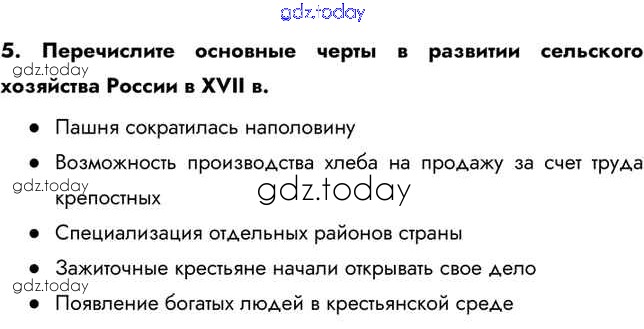 На страницах сайта gdz.today вы найдете учебный и вспомогательный материал, направленный на улучшения знаний школьной программы. ГДЗ - онлайн мир знаний Вопросы и задания §17 5 Учебнику по Истории России для 7 класса Арсентьев, Данилов Просвещение 2016