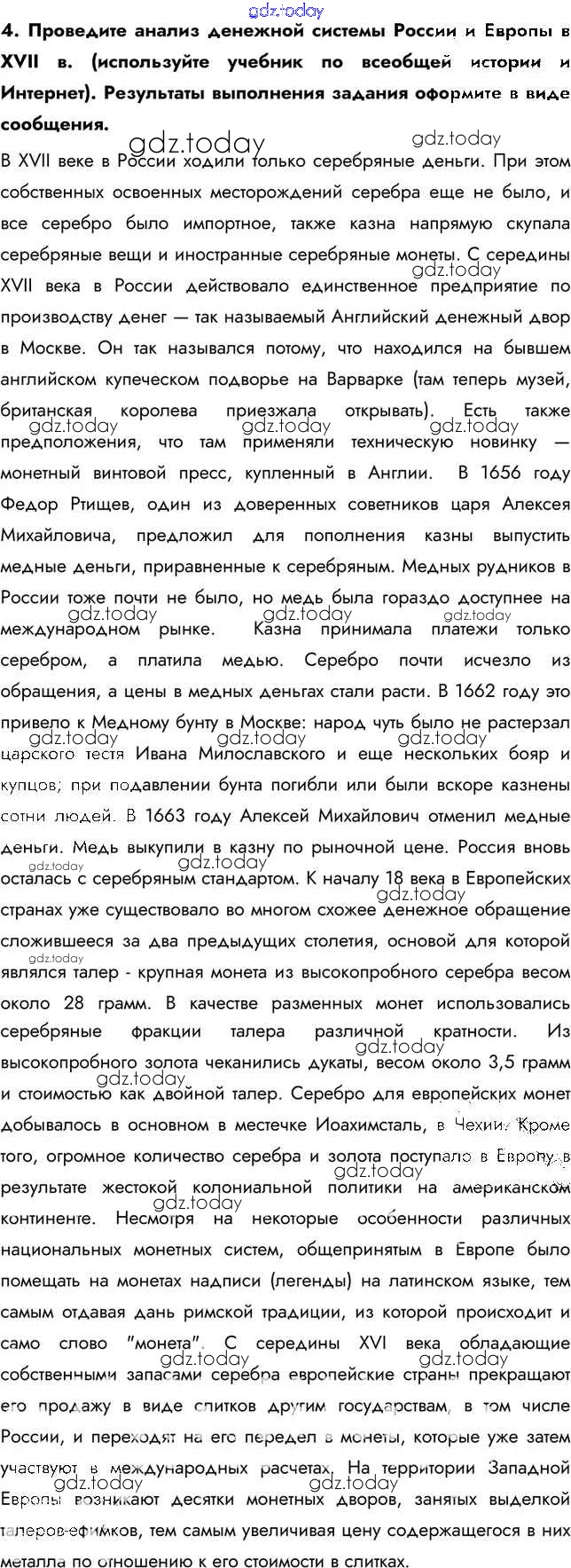 На страницах сайта gdz.today вы найдете учебный и вспомогательный материал, направленный на улучшения знаний школьной программы. ГДЗ - онлайн мир знаний Думаем, сравниваем, размышляем §17 4 Учебнику по Истории России для 7 класса Арсентьев, Данилов Просвещение 2016