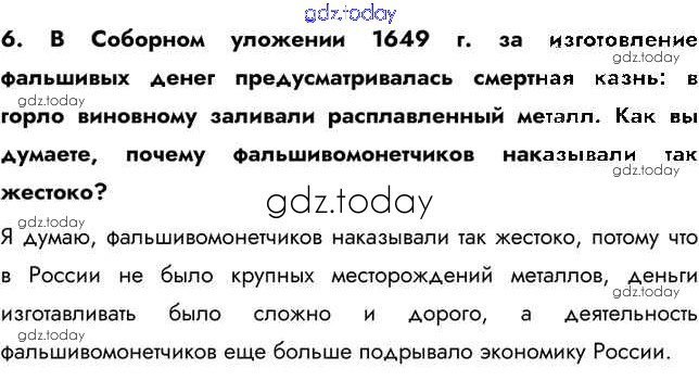На страницах сайта gdz.today вы найдете учебный и вспомогательный материал, направленный на улучшения знаний школьной программы. ГДЗ - онлайн мир знаний Вопросы и задания §18 6 Учебнику по Истории России для 7 класса Арсентьев, Данилов Просвещение 2016