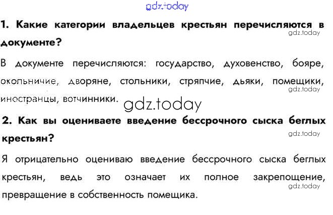 Ответы к Изучаем документ §18 стр.43 Учебнику по Истории России для 7 класса Арсентьев, Данилов Просвещение 2016