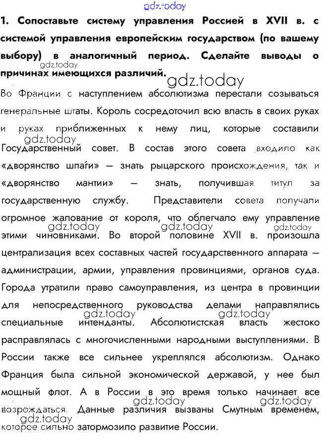 На страницах сайта gdz.today вы найдете учебный и вспомогательный материал, направленный на улучшения знаний школьной программы. ГДЗ - онлайн мир знаний Думаем, сравниваем, размышляем §18 1 Учебнику по Истории России для 7 класса Арсентьев, Данилов Просвещение 2016
