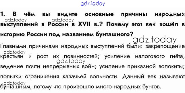 На страницах сайта gdz.today вы найдете учебный и вспомогательный материал, направленный на улучшения знаний школьной программы. ГДЗ - онлайн мир знаний Вопросы и задания §20 1 Учебнику по Истории России для 7 класса Арсентьев, Данилов Просвещение 2016