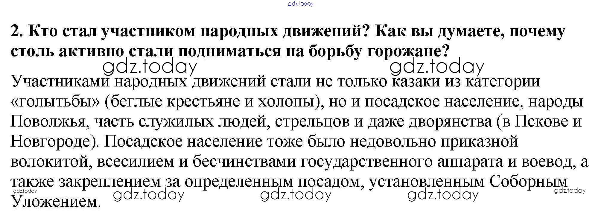 На страницах сайта gdz.today вы найдете учебный и вспомогательный материал, направленный на улучшения знаний школьной программы. ГДЗ - онлайн мир знаний Вопросы и задания §20 2 Учебнику по Истории России для 7 класса Арсентьев, Данилов Просвещение 2016
