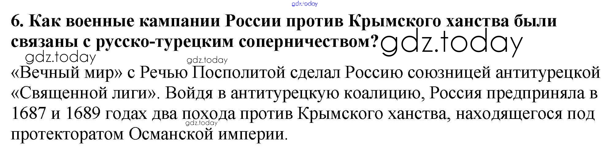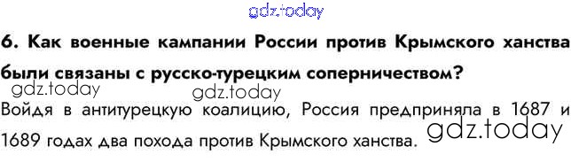 На страницах сайта gdz.today вы найдете учебный и вспомогательный материал, направленный на улучшения знаний школьной программы. ГДЗ - онлайн мир знаний Вопросы и задания §21-22 6 Учебнику по Истории России для 7 класса Арсентьев, Данилов Просвещение 2016