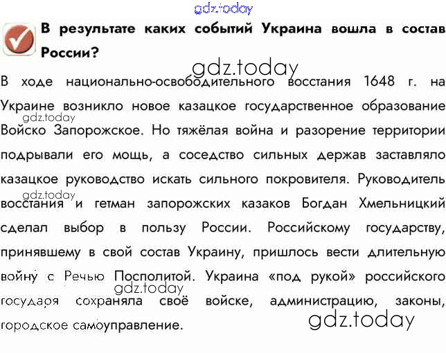 На страницах сайта gdz.today вы найдете учебный и вспомогательный материал, направленный на улучшения знаний школьной программы. ГДЗ - онлайн мир знаний Вопрос в начале параграфа §23 1 Учебнику по Истории России для 7 класса Арсентьев, Данилов Просвещение 2016