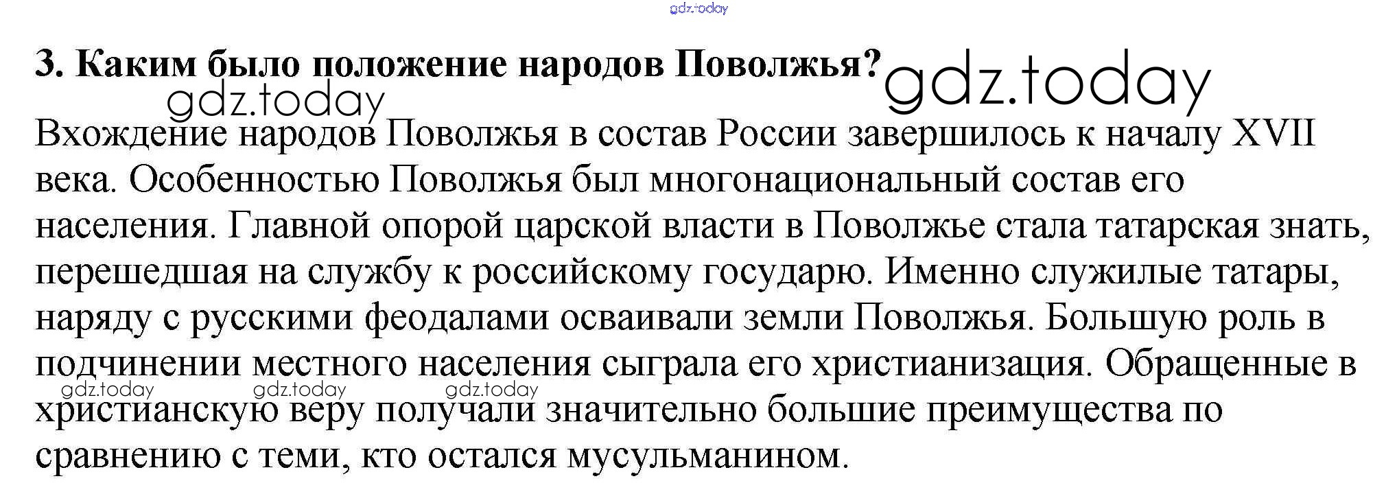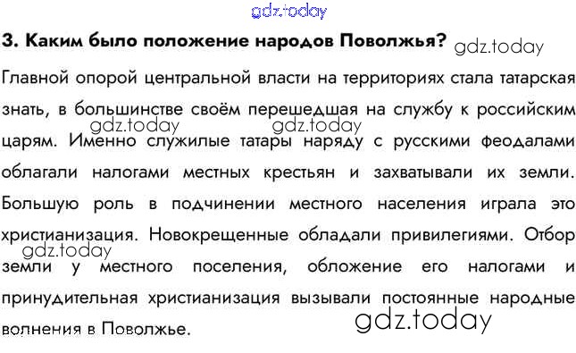 На страницах сайта gdz.today вы найдете учебный и вспомогательный материал, направленный на улучшения знаний школьной программы. ГДЗ - онлайн мир знаний Вопросы и задания Народы России в XVII в. 3 Учебнику по Истории России для 7 класса Арсентьев, Данилов Просвещение 2016