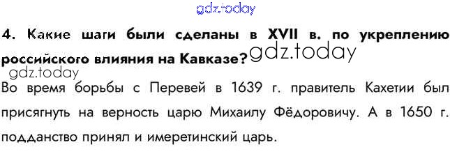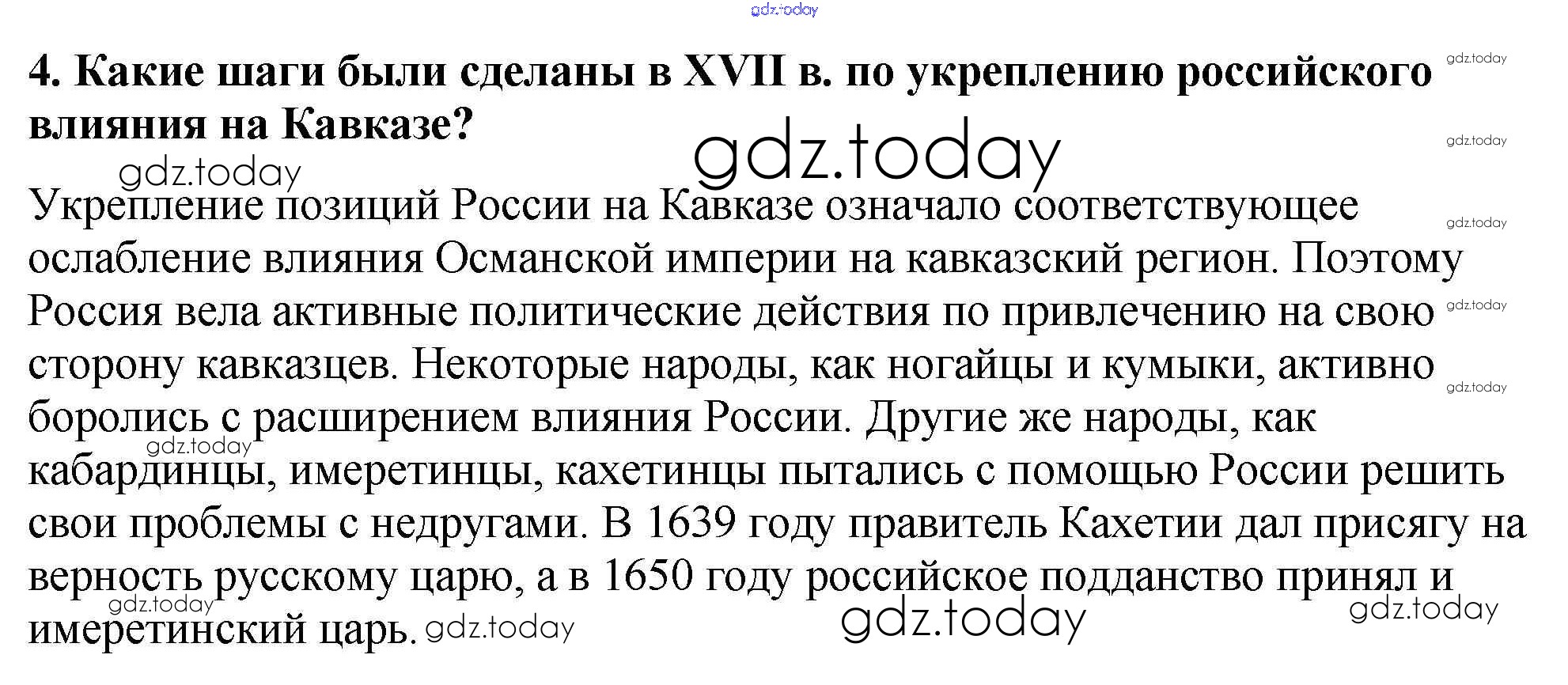 На страницах сайта gdz.today вы найдете учебный и вспомогательный материал, направленный на улучшения знаний школьной программы. ГДЗ - онлайн мир знаний Вопросы и задания Народы России в XVII в. 4 Учебнику по Истории России для 7 класса Арсентьев, Данилов Просвещение 2016