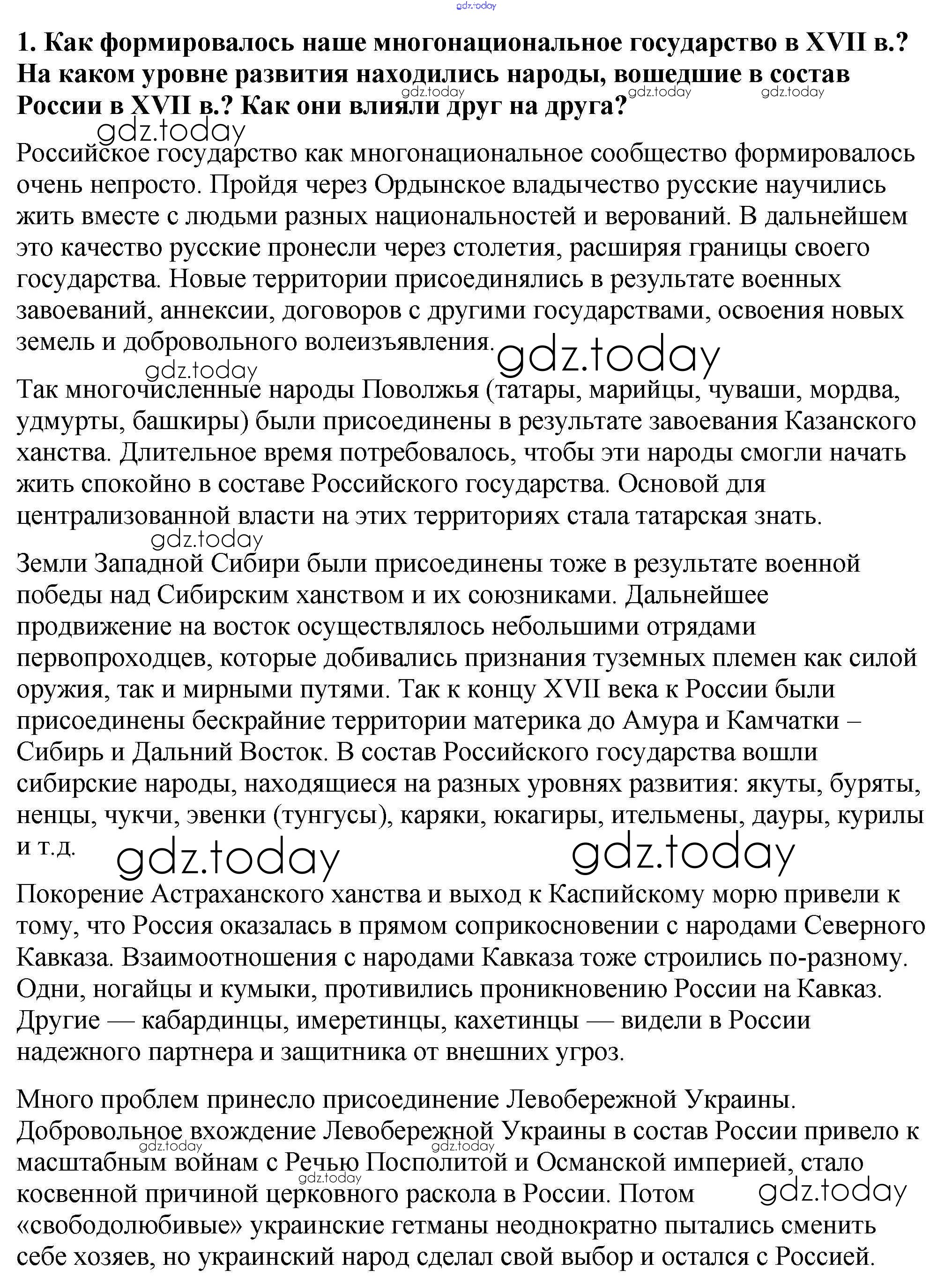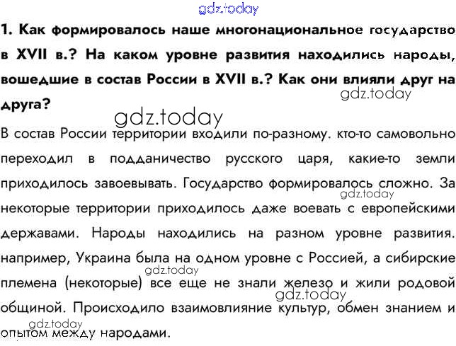 На страницах сайта gdz.today вы найдете учебный и вспомогательный материал, направленный на улучшения знаний школьной программы. ГДЗ - онлайн мир знаний Думаем, сравниваем, размышляем Народы России в XVII в. 1 Учебнику по Истории России для 7 класса Арсентьев, Данилов Просвещение 2016