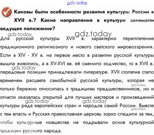 На страницах сайта gdz.today вы найдете учебный и вспомогательный материал, направленный на улучшения знаний школьной программы. ГДЗ - онлайн мир знаний Вопрос в начале параграфа §26 1 Учебнику по Истории России для 7 класса Арсентьев, Данилов Просвещение 2016