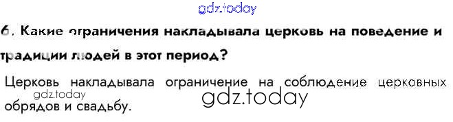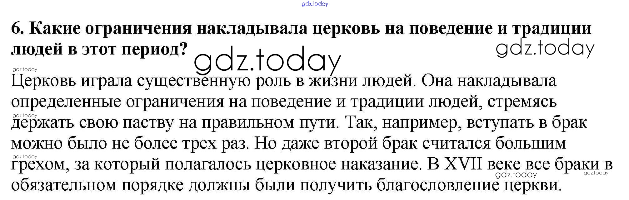 На страницах сайта gdz.today вы найдете учебный и вспомогательный материал, направленный на улучшения знаний школьной программы. ГДЗ - онлайн мир знаний Вопросы и задания Сословный быт и картина мира русского человека в XVII в. 6 Учебнику по Истории России для 7 класса Арсентьев, Данилов Просвещение 2016