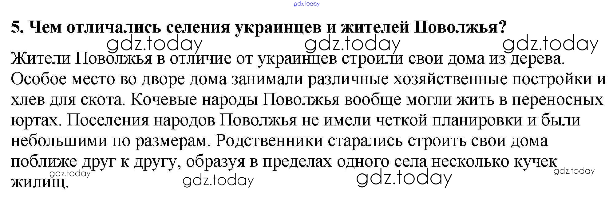 На страницах сайта gdz.today вы найдете учебный и вспомогательный материал, направленный на улучшения знаний школьной программы. ГДЗ - онлайн мир знаний Вопросы и задания Повседневная жизнь народов Украины, Поволжья, Сибири и Северного Кавказа в XVII в. 5 Учебнику по Истории России для 7 класса Арсентьев, Данилов Просвещение 2016