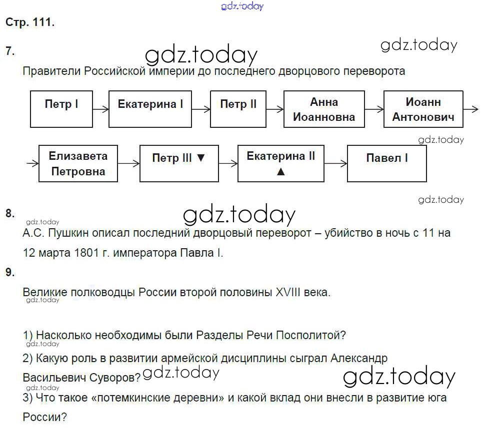 На страницах сайта gdz.today вы найдете учебный и вспомогательный материал, направленный на улучшения знаний школьной программы. ГДЗ - онлайн мир знаний Страницы (решение) 111 Рабочей тетради по Истории России для 7 класса Баранов Вентана-граф Алгоритм успеха 2017