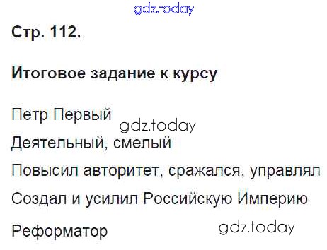 На страницах сайта gdz.today вы найдете учебный и вспомогательный материал, направленный на улучшения знаний школьной программы. ГДЗ - онлайн мир знаний Страницы (решение) 112 Рабочей тетради по Истории России для 7 класса Баранов Вентана-граф Алгоритм успеха 2017