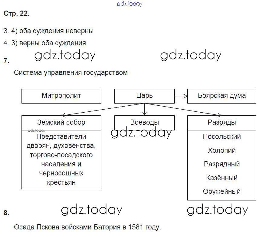 На страницах сайта gdz.today вы найдете учебный и вспомогательный материал, направленный на улучшения знаний школьной программы. ГДЗ - онлайн мир знаний Страницы (решение) 22 Рабочей тетради по Истории России для 7 класса Баранов Вентана-граф Алгоритм успеха 2017