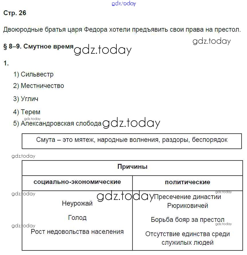 На страницах сайта gdz.today вы найдете учебный и вспомогательный материал, направленный на улучшения знаний школьной программы. ГДЗ - онлайн мир знаний Страницы (решение) 26 Рабочей тетради по Истории России для 7 класса Баранов Вентана-граф Алгоритм успеха 2017