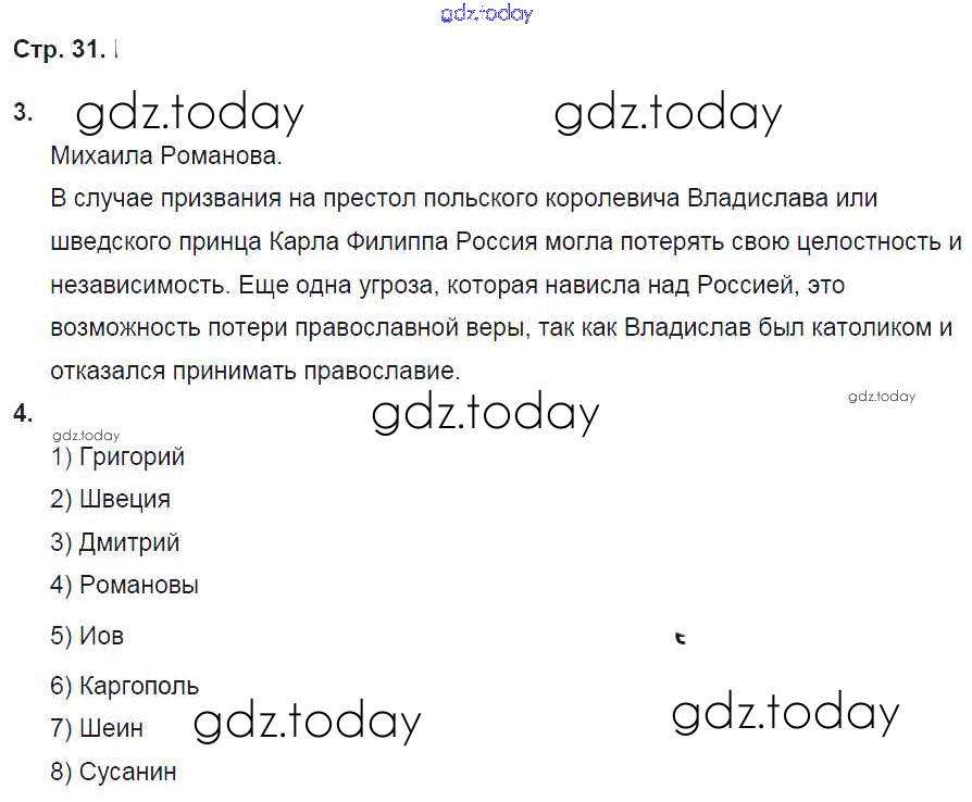 На страницах сайта gdz.today вы найдете учебный и вспомогательный материал, направленный на улучшения знаний школьной программы. ГДЗ - онлайн мир знаний Страницы (решение) 31 Рабочей тетради по Истории России для 7 класса Баранов Вентана-граф Алгоритм успеха 2017