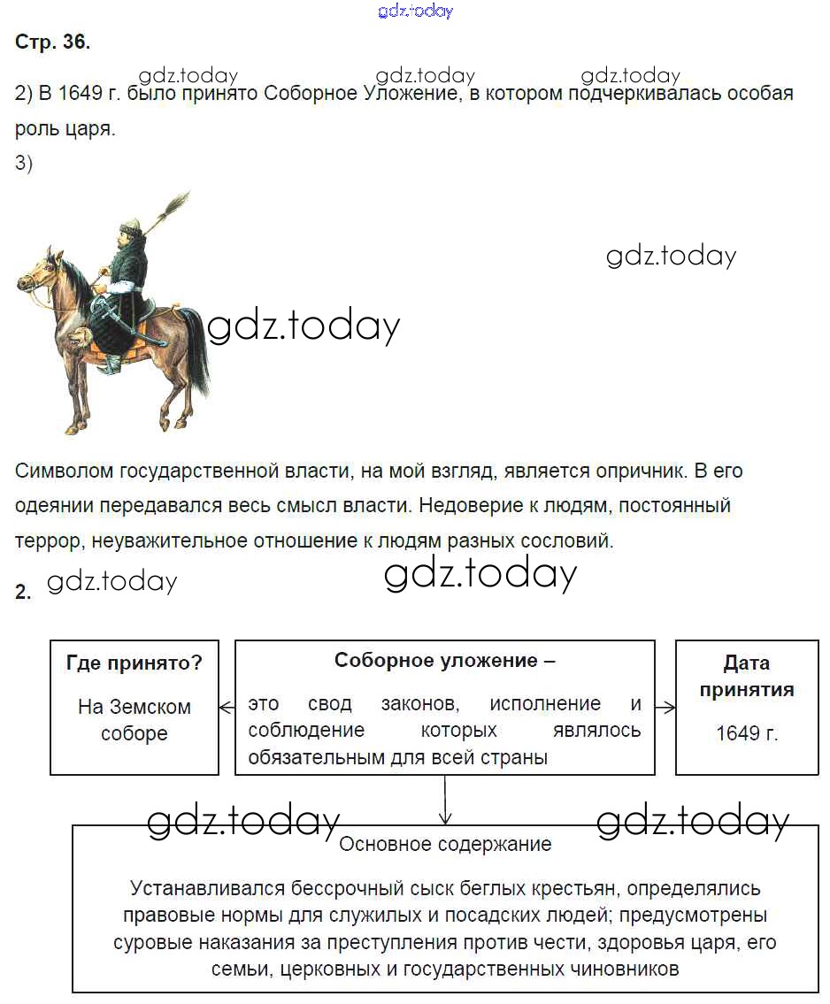 На страницах сайта gdz.today вы найдете учебный и вспомогательный материал, направленный на улучшения знаний школьной программы. ГДЗ - онлайн мир знаний Страницы (решение) 36 Рабочей тетради по Истории России для 7 класса Баранов Вентана-граф Алгоритм успеха 2017