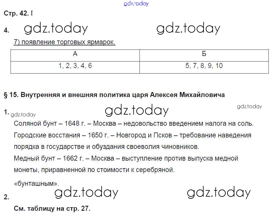 На страницах сайта gdz.today вы найдете учебный и вспомогательный материал, направленный на улучшения знаний школьной программы. ГДЗ - онлайн мир знаний Страницы (решение) 42 Рабочей тетради по Истории России для 7 класса Баранов Вентана-граф Алгоритм успеха 2017