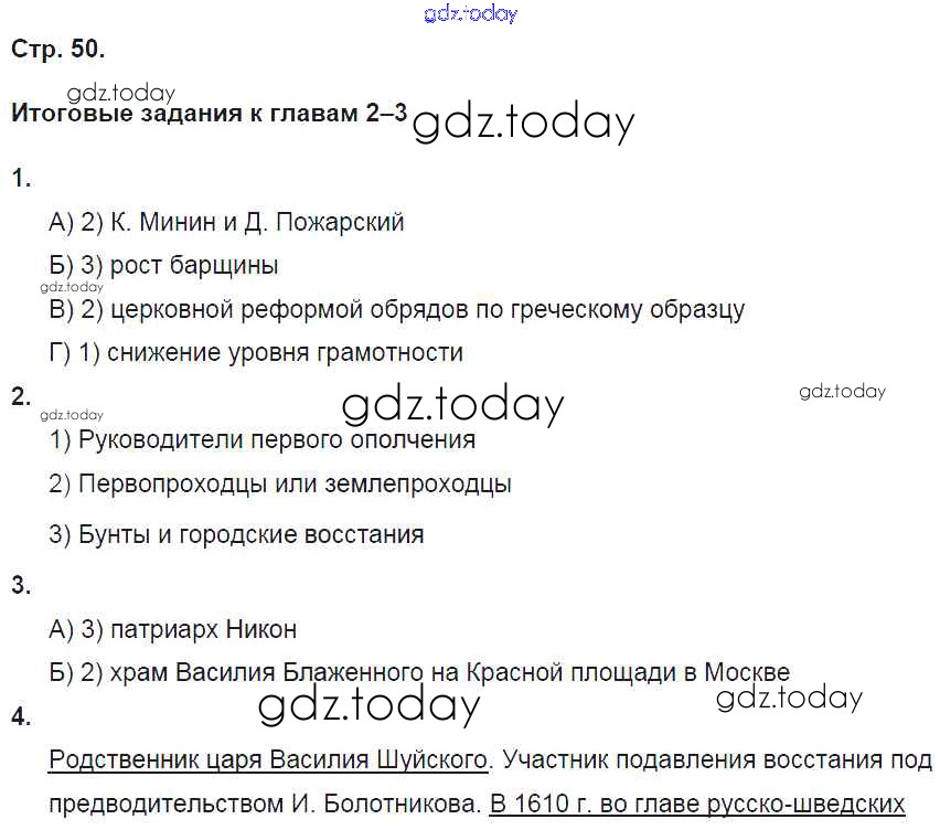 На страницах сайта gdz.today вы найдете учебный и вспомогательный материал, направленный на улучшения знаний школьной программы. ГДЗ - онлайн мир знаний Страницы (решение) 50 Рабочей тетради по Истории России для 7 класса Баранов Вентана-граф Алгоритм успеха 2017