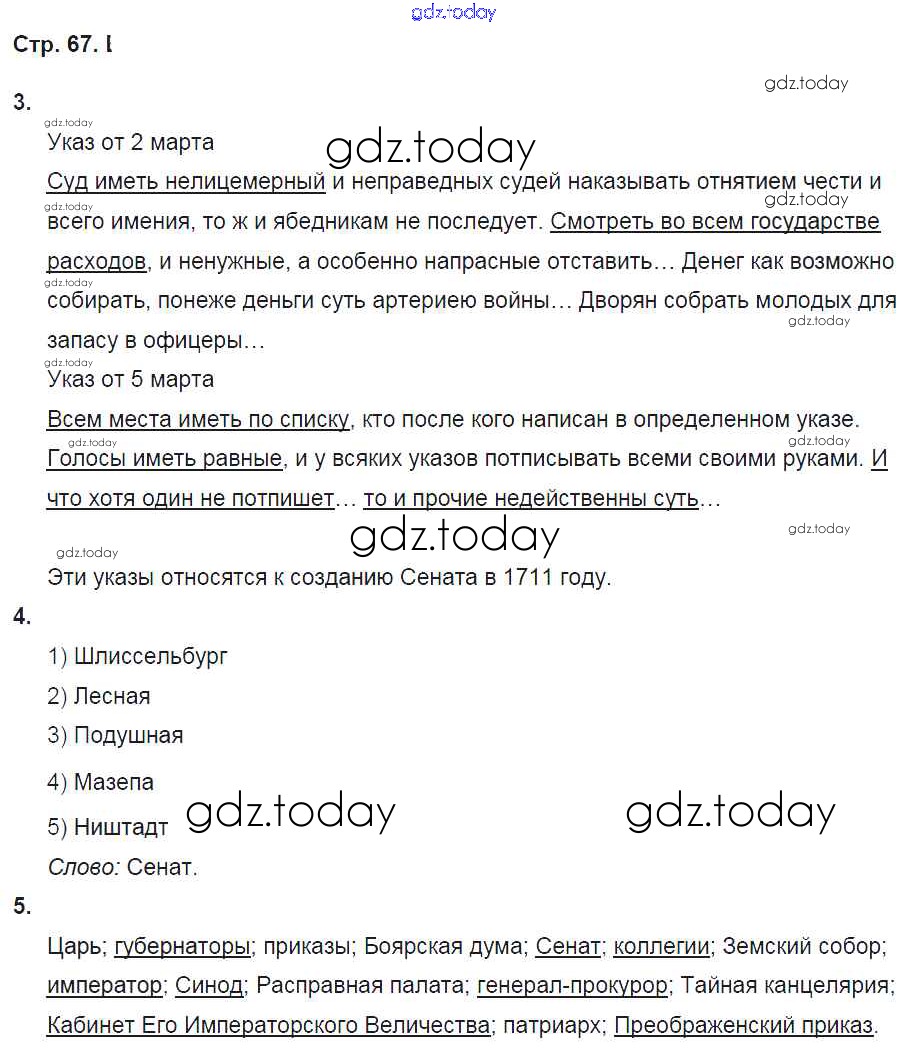 На страницах сайта gdz.today вы найдете учебный и вспомогательный материал, направленный на улучшения знаний школьной программы. ГДЗ - онлайн мир знаний Страницы (решение) 67 Рабочей тетради по Истории России для 7 класса Баранов Вентана-граф Алгоритм успеха 2017