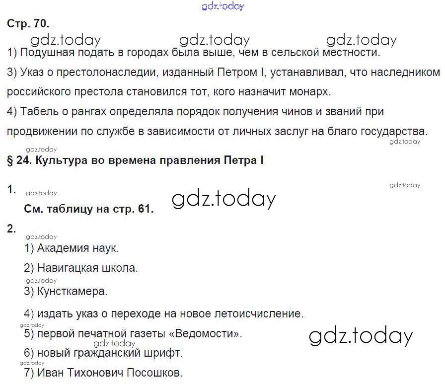 На страницах сайта gdz.today вы найдете учебный и вспомогательный материал, направленный на улучшения знаний школьной программы. ГДЗ - онлайн мир знаний Страницы (решение) 70 Рабочей тетради по Истории России для 7 класса Баранов Вентана-граф Алгоритм успеха 2017