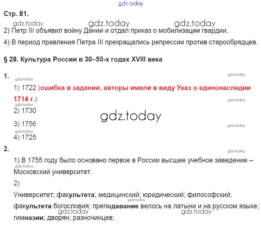 На страницах сайта gdz.today вы найдете учебный и вспомогательный материал, направленный на улучшения знаний школьной программы. ГДЗ - онлайн мир знаний Страницы (решение) 81 Рабочей тетради по Истории России для 7 класса Баранов Вентана-граф Алгоритм успеха 2017