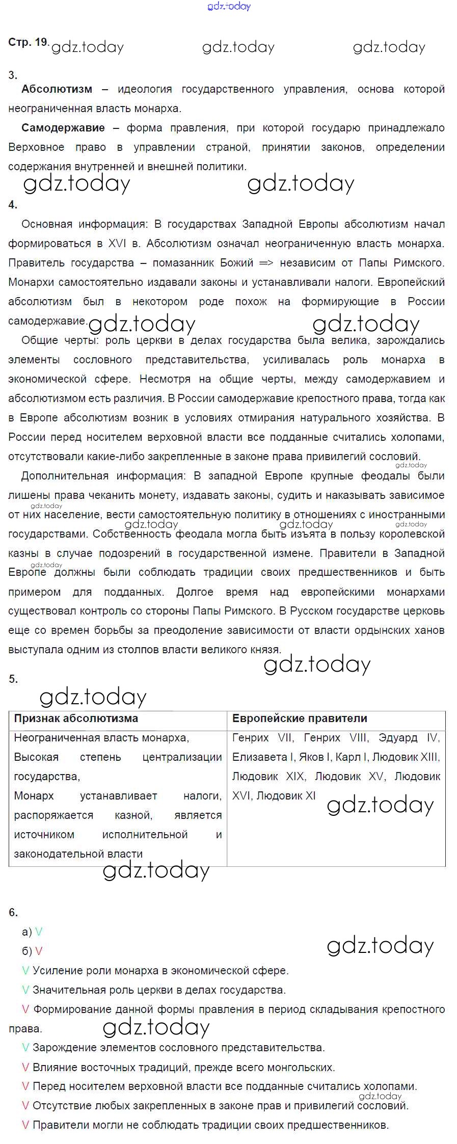 На страницах сайта gdz.today вы найдете учебный и вспомогательный материал, направленный на улучшения знаний школьной программы. ГДЗ - онлайн мир знаний Решение к части 1. Страницы 19 Рабочей тетради по Истории России для 7 класса Чернова Экзамен УМК 2017