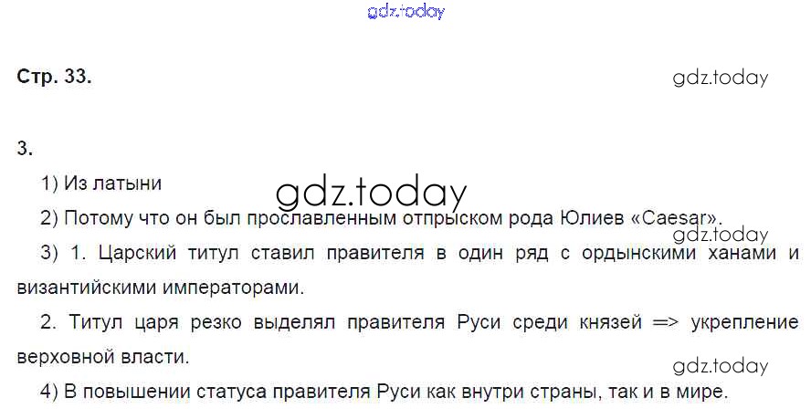 На страницах сайта gdz.today вы найдете учебный и вспомогательный материал, направленный на улучшения знаний школьной программы. ГДЗ - онлайн мир знаний Решение к части 1. Страницы 33 Рабочей тетради по Истории России для 7 класса Чернова Экзамен УМК 2017