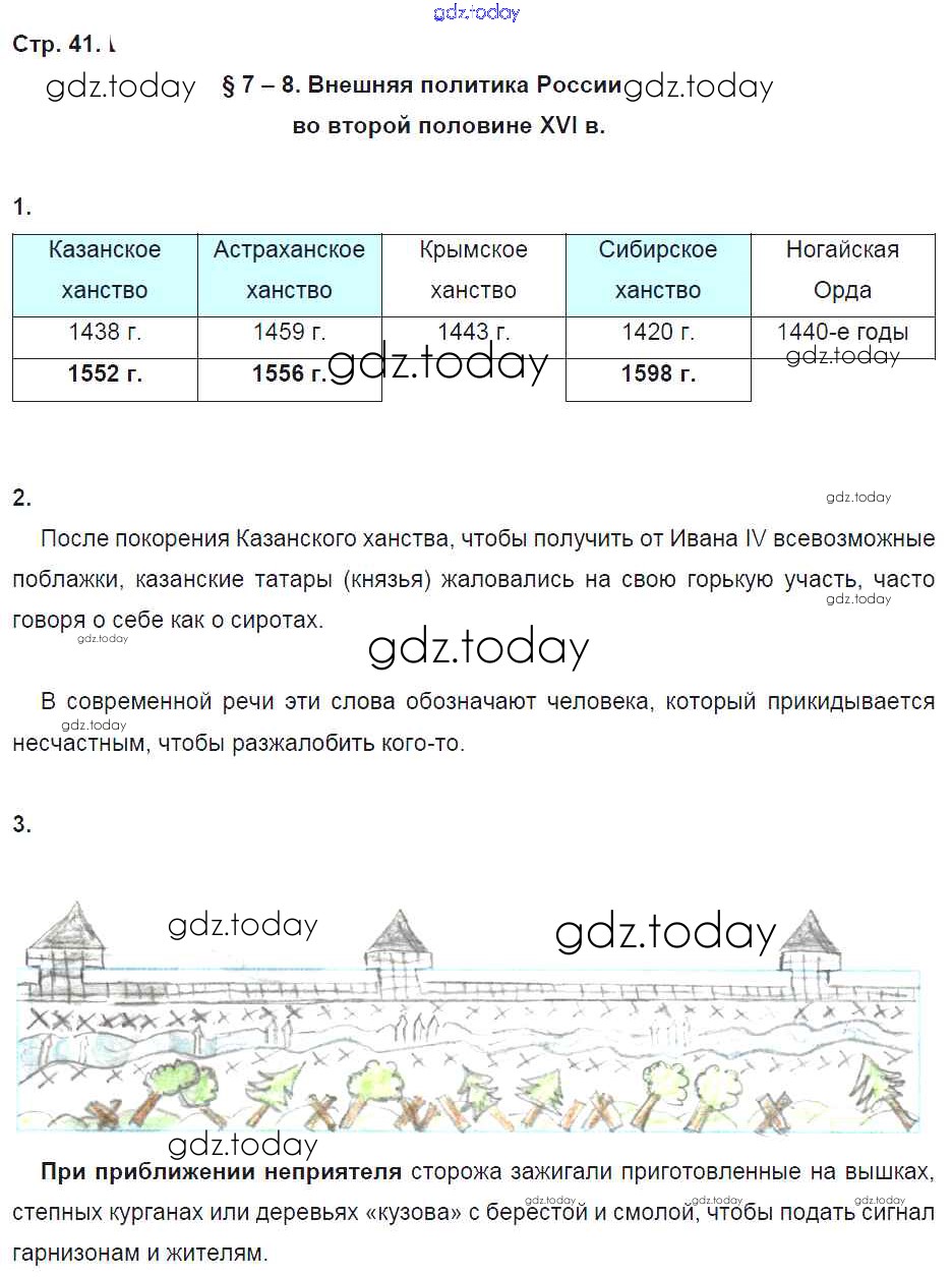 На страницах сайта gdz.today вы найдете учебный и вспомогательный материал, направленный на улучшения знаний школьной программы. ГДЗ - онлайн мир знаний Решение к части 1. Страницы 41 Рабочей тетради по Истории России для 7 класса Чернова Экзамен УМК 2017