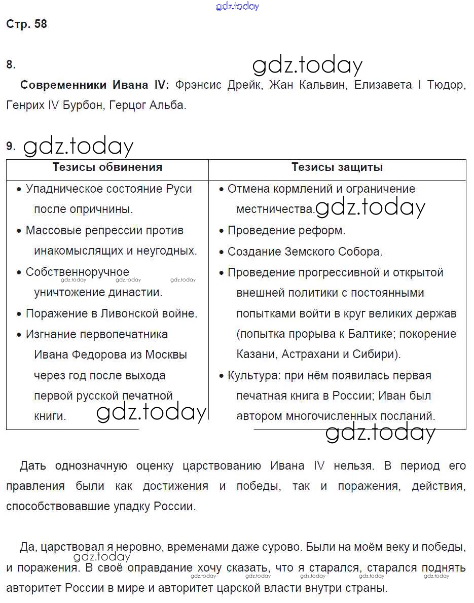 На страницах сайта gdz.today вы найдете учебный и вспомогательный материал, направленный на улучшения знаний школьной программы. ГДЗ - онлайн мир знаний Решение к части 1. Страницы 58 Рабочей тетради по Истории России для 7 класса Чернова Экзамен УМК 2017