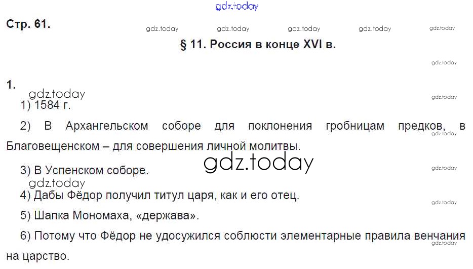 На страницах сайта gdz.today вы найдете учебный и вспомогательный материал, направленный на улучшения знаний школьной программы. ГДЗ - онлайн мир знаний Решение к части 1. Страницы 61 Рабочей тетради по Истории России для 7 класса Чернова Экзамен УМК 2017
