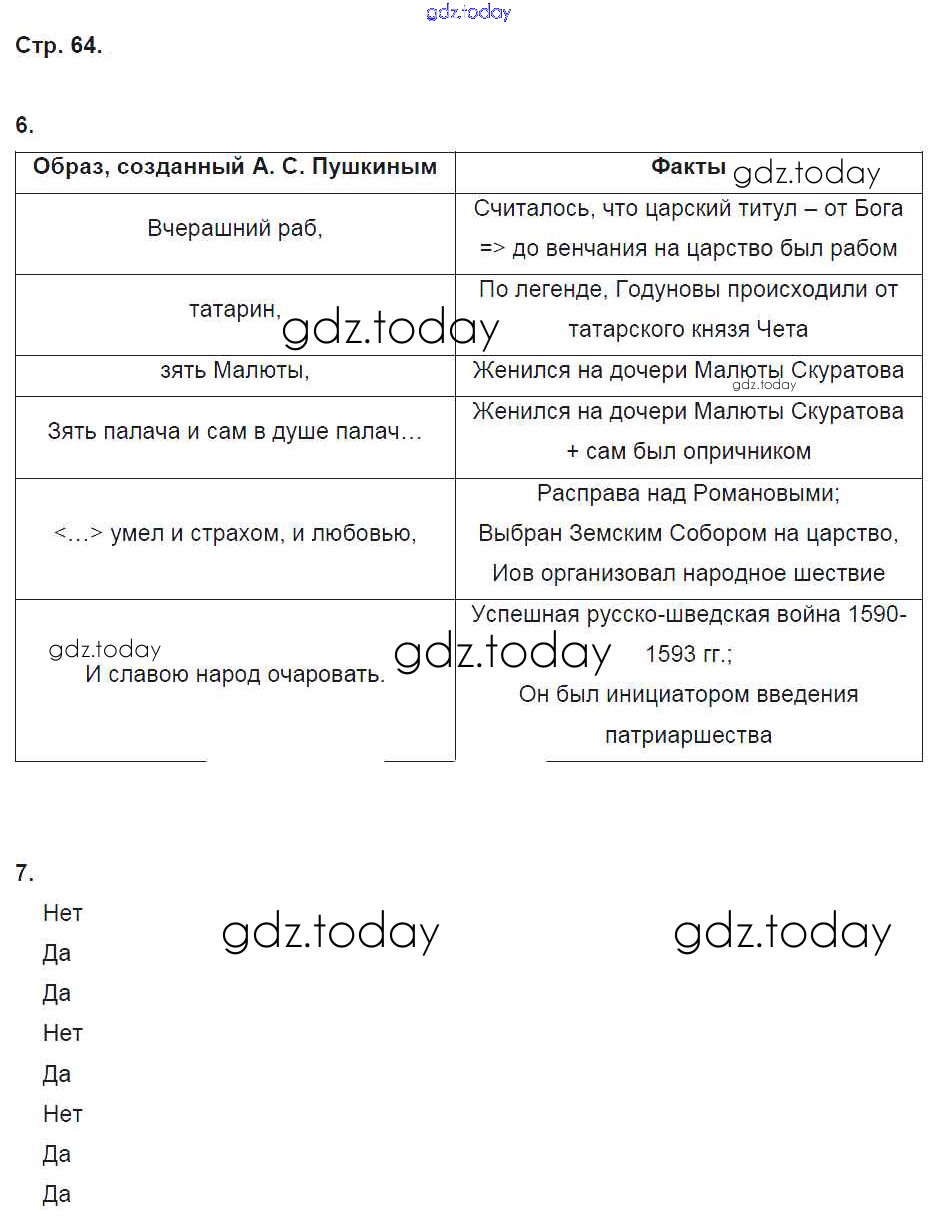 На страницах сайта gdz.today вы найдете учебный и вспомогательный материал, направленный на улучшения знаний школьной программы. ГДЗ - онлайн мир знаний Решение к части 1. Страницы 64 Рабочей тетради по Истории России для 7 класса Чернова Экзамен УМК 2017