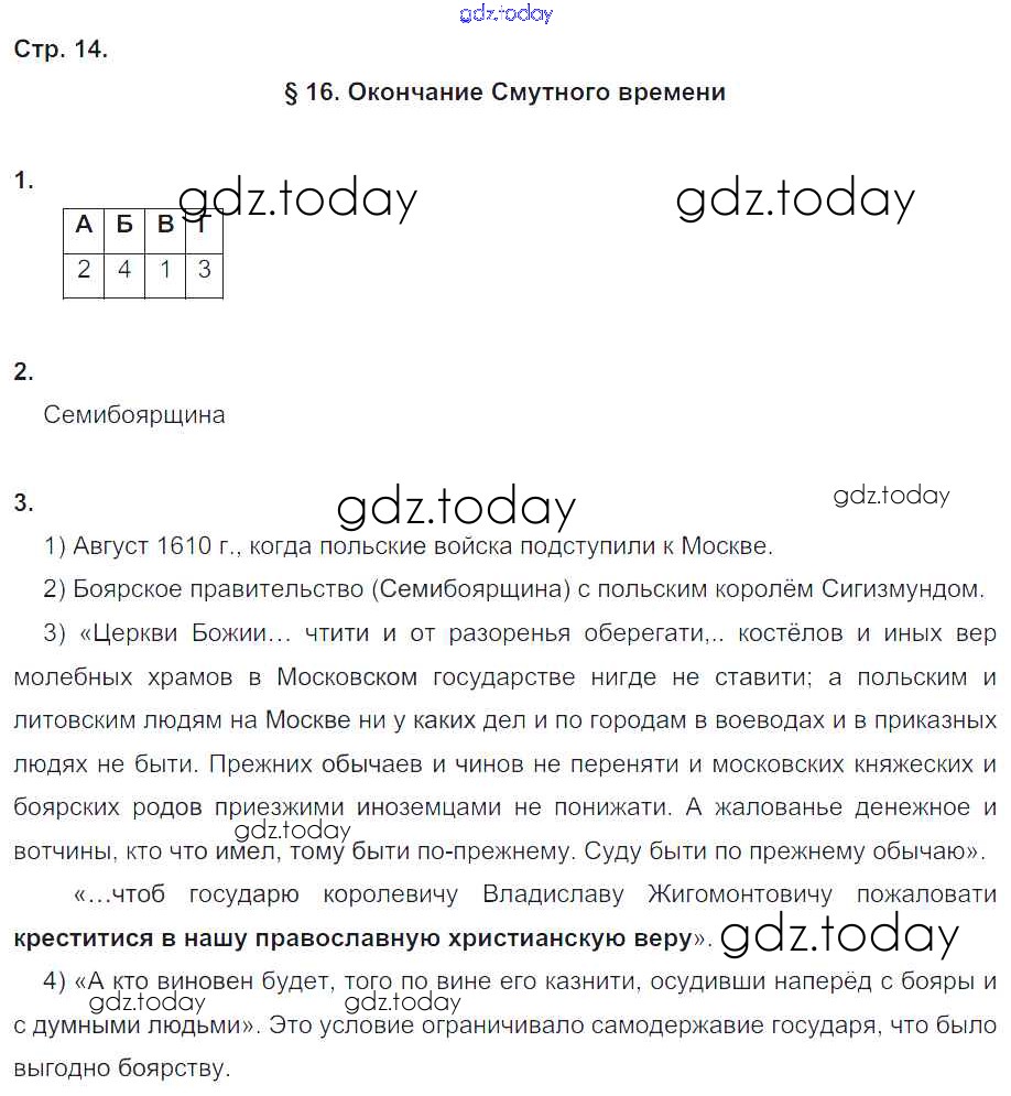 На страницах сайта gdz.today вы найдете учебный и вспомогательный материал, направленный на улучшения знаний школьной программы. ГДЗ - онлайн мир знаний Решение к части 2. Страницы 14 Рабочей тетради по Истории России для 7 класса Чернова Экзамен УМК 2017