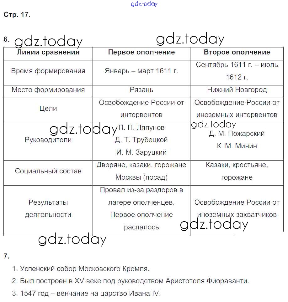На страницах сайта gdz.today вы найдете учебный и вспомогательный материал, направленный на улучшения знаний школьной программы. ГДЗ - онлайн мир знаний Решение к части 2. Страницы 17 Рабочей тетради по Истории России для 7 класса Чернова Экзамен УМК 2017