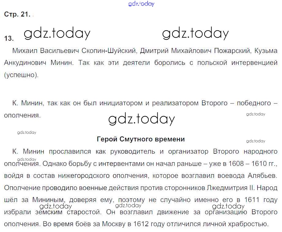 На страницах сайта gdz.today вы найдете учебный и вспомогательный материал, направленный на улучшения знаний школьной программы. ГДЗ - онлайн мир знаний Решение к части 2. Страницы 21 Рабочей тетради по Истории России для 7 класса Чернова Экзамен УМК 2017