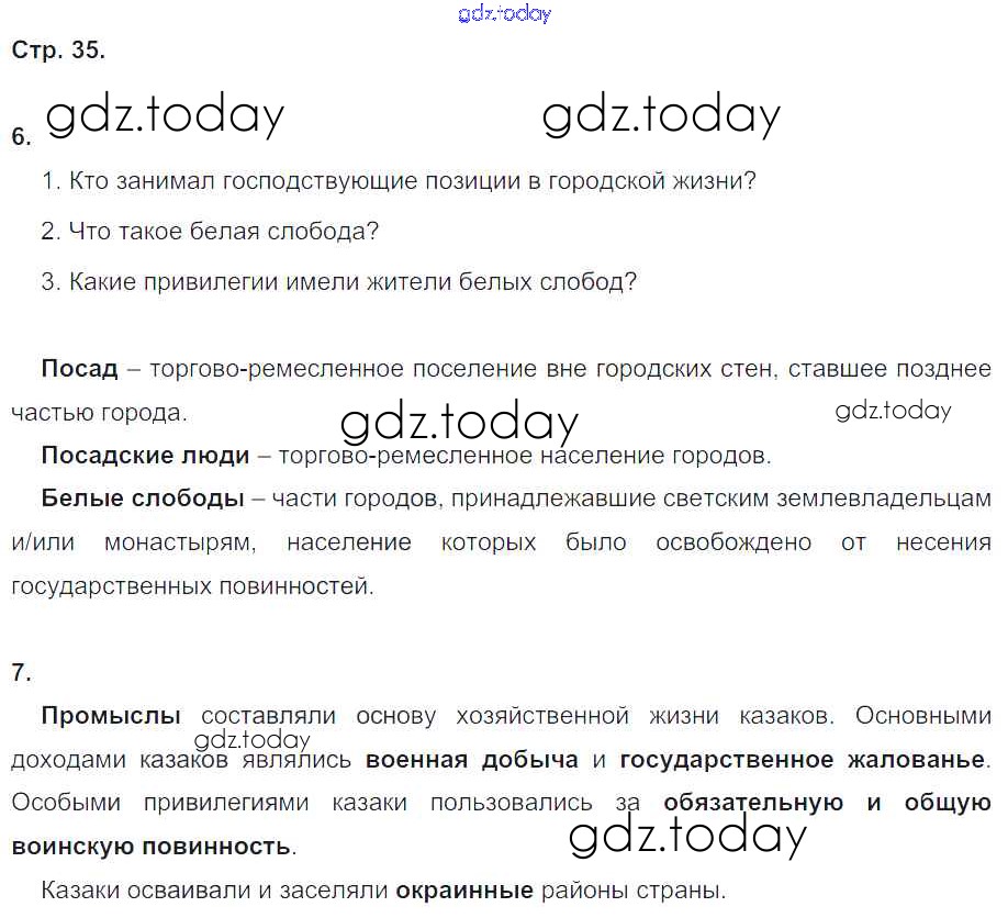 На страницах сайта gdz.today вы найдете учебный и вспомогательный материал, направленный на улучшения знаний школьной программы. ГДЗ - онлайн мир знаний Решение к части 2. Страницы 35 Рабочей тетради по Истории России для 7 класса Чернова Экзамен УМК 2017